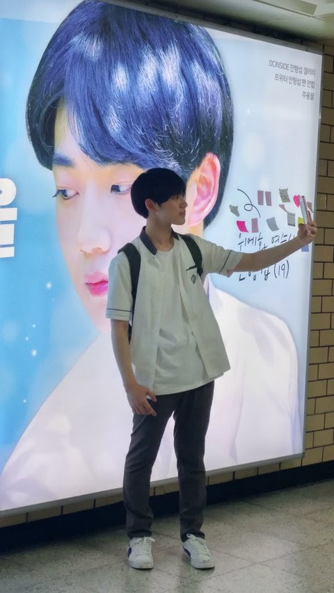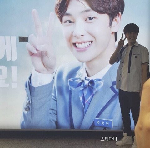 - The top 35 trainee Kim Donghan who cried and who's from Wi Entertainment also went to take a picture with his advert this week! Other trainees from his agency who appeared on P101 were Jo Sungwook and Jand Daehyun, and they went to take his picture with himㅋㅋㅋㅋ cute