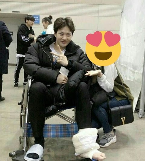 - He sprained his leg during a concert and had to attend another schedule the next day (Gayo daejun *boiling*) but this girl still found him and shoved herself to take a picture with him, I hope we get rid of those back fans