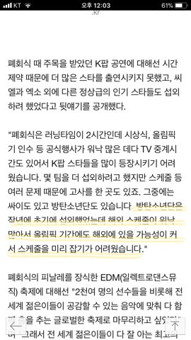 “The running time of the closing ceremony was 2 hours. We had to consider events such as the raising of the flag and other official events. There was also the TV broadcast time that needed to be taken into account so it was difficult to have many k-pop stars. We have contacted a few teams, but because of various reasons, they had to dismiss the offer. Psy was one of them and there was BTS too. We actually contacted BTS early last year, but because of they had a lot of schedules overseas, it was possible that they would be overseas during the Olympics. Hence, it would have been hard to schedule them”