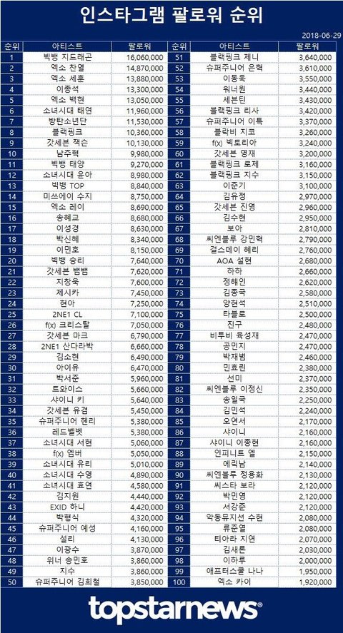 link : [enter-talk] KOREAN CELEBRITIES RANKING BASED ON INSTAGRAM FOLLOWERS