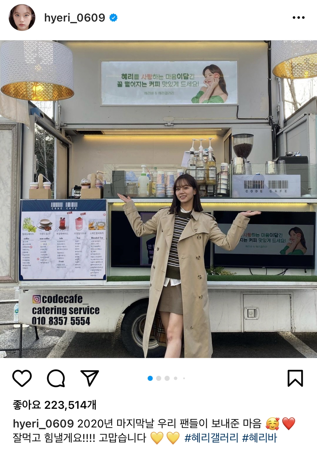 Hyeri is currently shooting her drama and there are so many celebrity friends of hers who sent her a coffee truck.